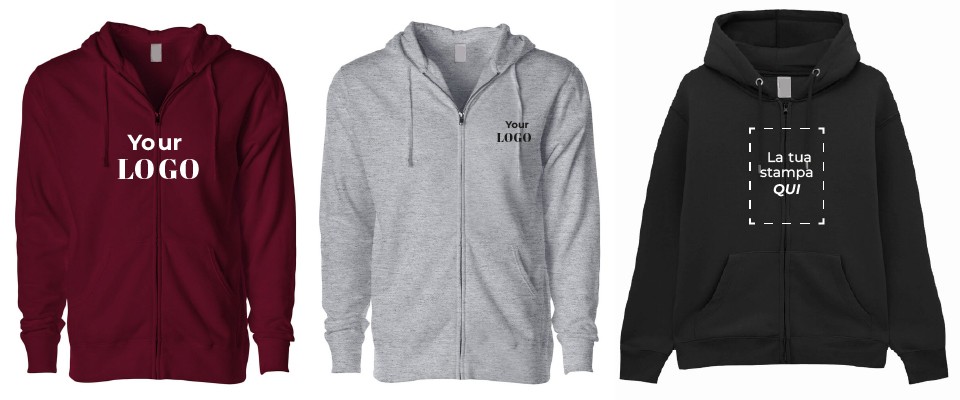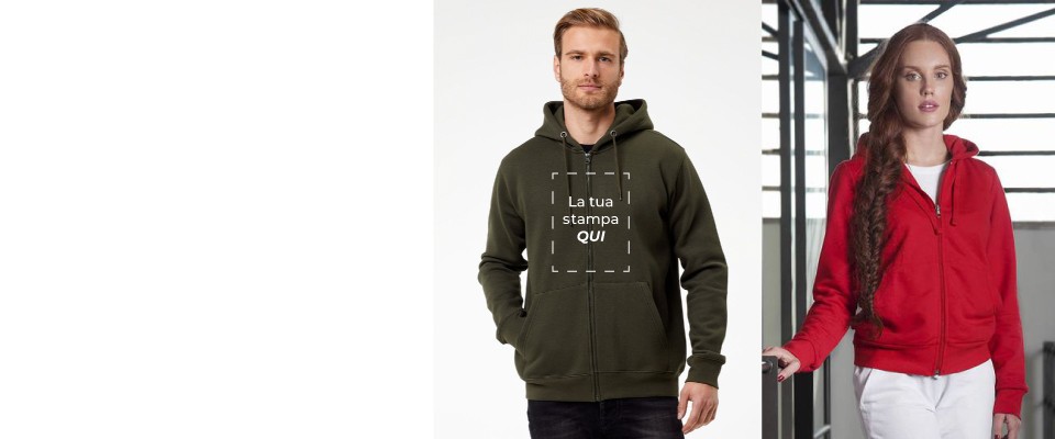 La felpa con cappuccio full zip unisex è uno dei capi più richiesti per abbigliamento personalizzato da lavoro, promozionale e aziendale, grazie alla perfetta combinazione tra design moderno, comfort e resa di stampa professionale.