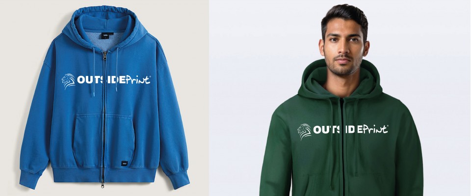 Configura ora la tua Felpa con Cappuccio Full Zip Personalizzata su OutsidePrint.com: