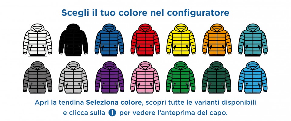 Puoi acquistare giacche di colori e taglie differenti all’interno di un’unica quantità.