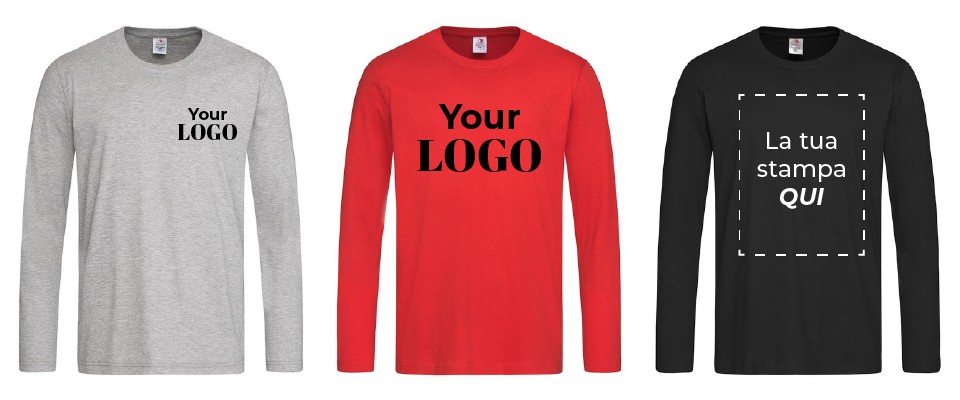 File accettati: vettoriali (.AI, .PDF, .SVG) o raster ad alta risoluzione (300 dpi a dimensione reale). Posizioni tipiche: petto sinistro, centro torace, retro spalle, manica.