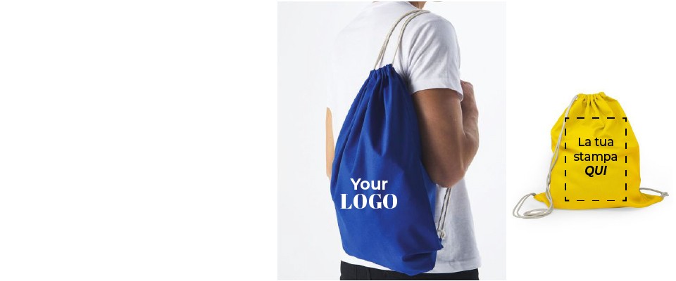 Anche neutre: puoi ordinare le borse senza stampa, perfette per eventi, associazioni sportive, palestre e distribuzione rapida.
