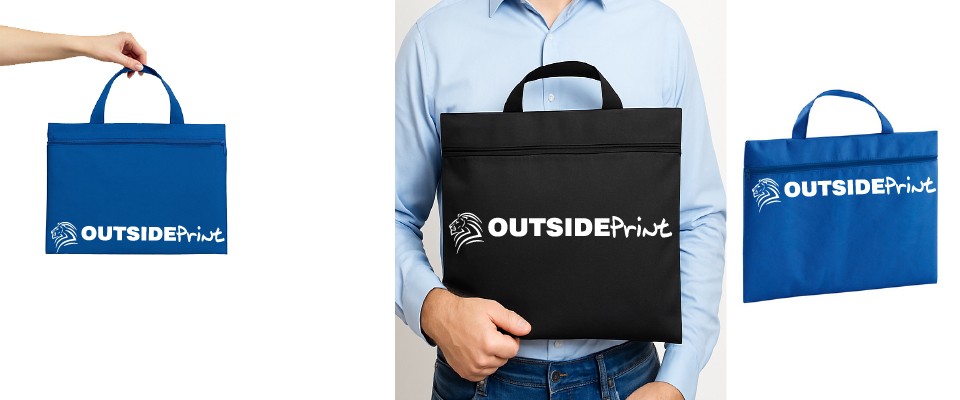 Costruzione: manico superiore integrato, chiusura con zip, struttura piatta e sottile per un trasporto pratico. Superficie perfetta per la stampa personalizzata.