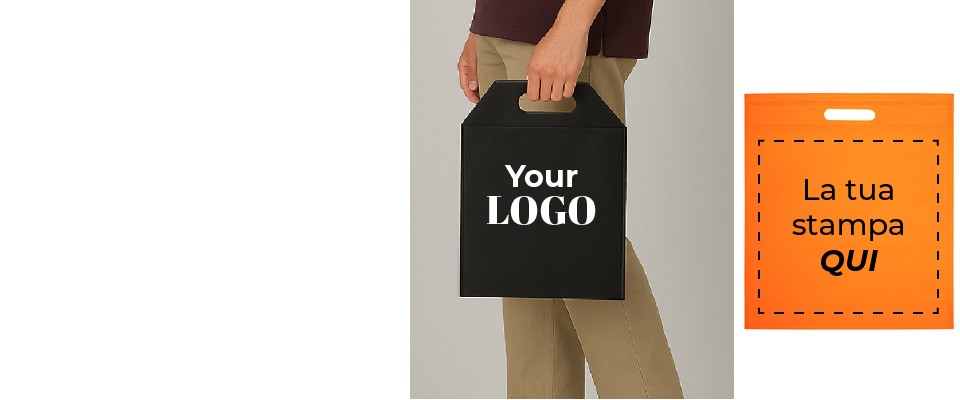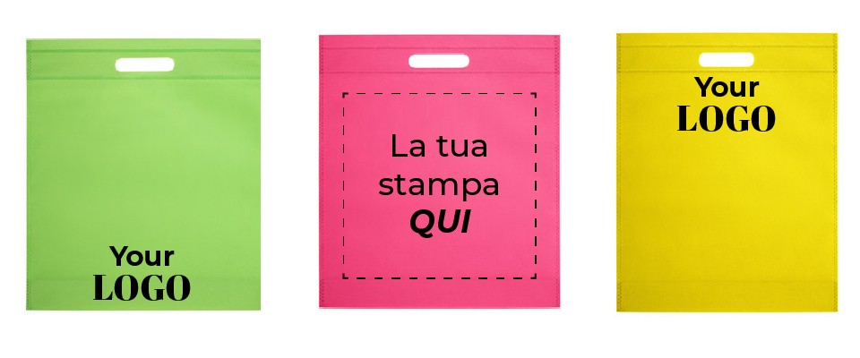 Anche neutre: puoi ordinare le borse senza stampa, pronte per distribuzione immediata o utilizzo aziendale.