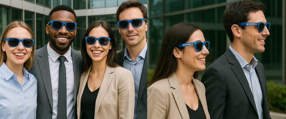 Cerchi occhiali da sole per PC personalizzati per il tuo brand, evento o team? Qui trovi occhiali professionali, disponibili con stampa oppure neutri, senza stampa. Materiali resistenti, montatura ergonomica e lenti con filtro luce blu progettate per proteggere gli occhi durante l’uso prolungato di schermi digitali.