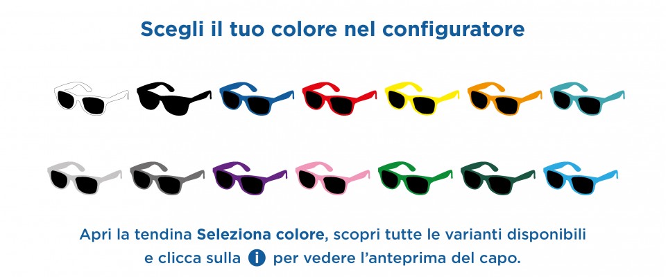 Anche neutri: puoi ordinare gli occhiali senza stampa, perfetti per eventi, promozioni o per un utilizzo interno in azienda.