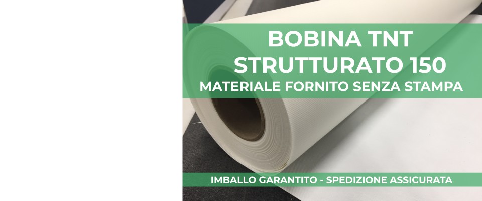 Le bobine in TNT (Tessuto Non Tessuto) 100% polipropilene sono la soluzione pratica ed economica per realizzare striscioni e teli temporanei con effetto tessuto. Fornite neutre, non stampate, sono pronte per il taglio e la messa in opera in eventi, fiere, gare sportive, manifestazioni, campagne promozionali e comunicazioni istituzionali.
