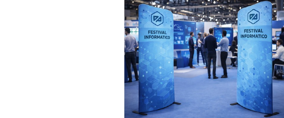 Grazie alla combinazione di struttura tubolare in alluminio, grafica in tessuto elasticizzato stampato in alta definizione e montaggio rapido senza attrezzi, il Fondale a Tubolare Curvo è la soluzione ideale per aziende, agenzie di comunicazione e allestitori che cercano modularità, affidabilità e qualità estetica nel tempo.