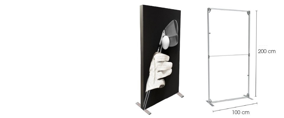Include telaio FastFrame preassemblato da 200×100 cm, basi, grafica in tessuto Classic o Premium e borsa per il trasporto. Soluzione completa subito pronta all’allestimento.