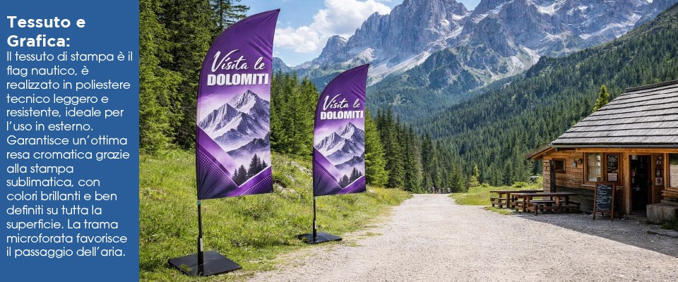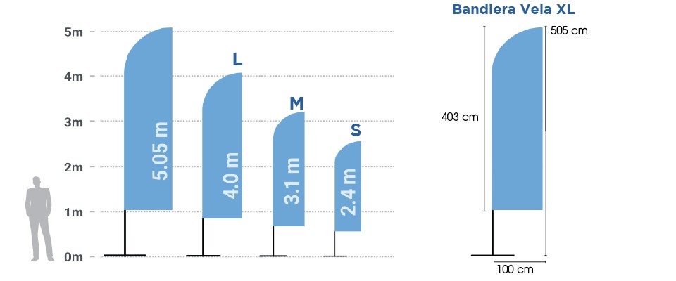 La Bandiera Vela XL è progettata per utilizzo outdoor continuativo professionale.