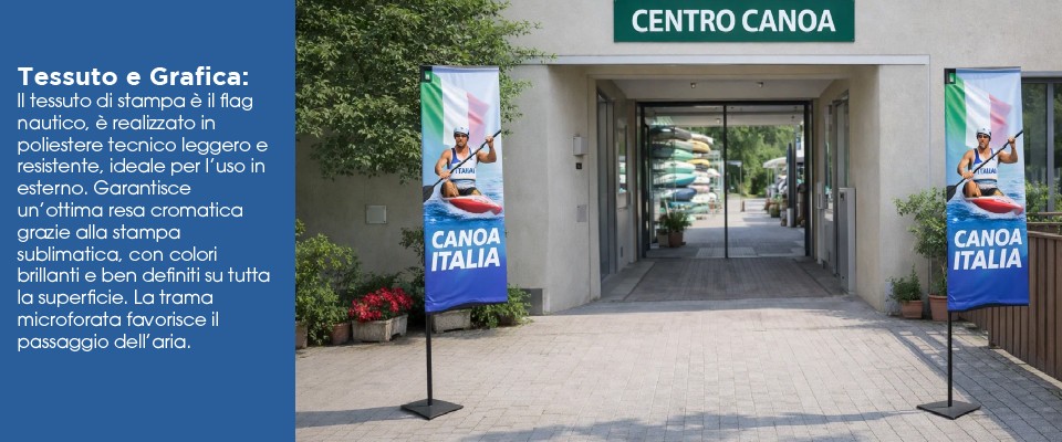 OutsidePrint.com realizza la Vela Pubblicitaria 3 Metri personalizzata con stampa ad alta definizione su tessuto flag nautico resistente a vento, sole e agenti atmosferici.