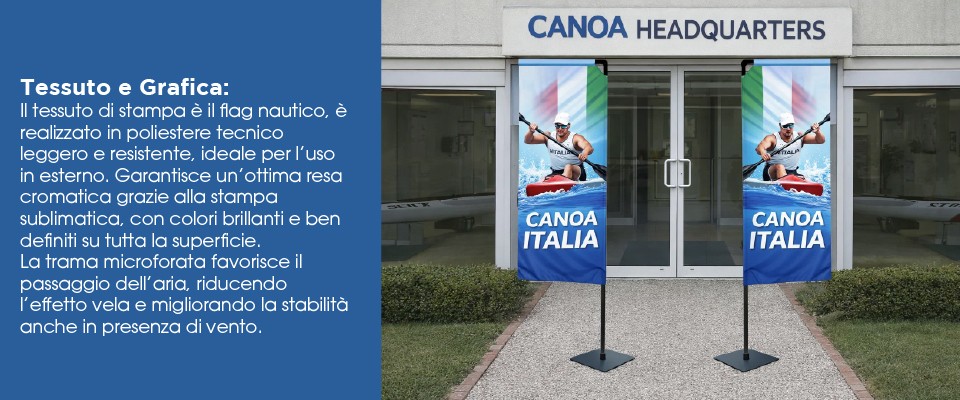 OutsidePrint.com realizza la Vela Pubblicitaria 3 Metri Bifacciale personalizzata con stampa ad alta definizione su tessuto flag nautico resistente a vento, sole e agenti atmosferici.