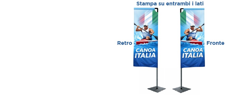 Visibilità a 360° del messaggio pubblicitarioComunicazione efficace in entrambi i sensi di passaggioPossibilità di utilizzare la stessa grafica o due messaggi differentiMaggiore impatto visivo rispetto alle vele monofaccialiIdeale per ambienti affollati, eventi e posizionamenti centrali