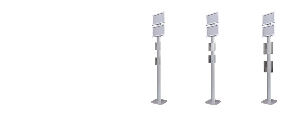 Available in three different configurations, this stand is equipped with horizontal A4 snap frames for quick message updates and horizontal A4 or A5 brochure holders, perfect for displaying printed material. The total height is 190 cm, offering excellent visibility even in busy spaces.