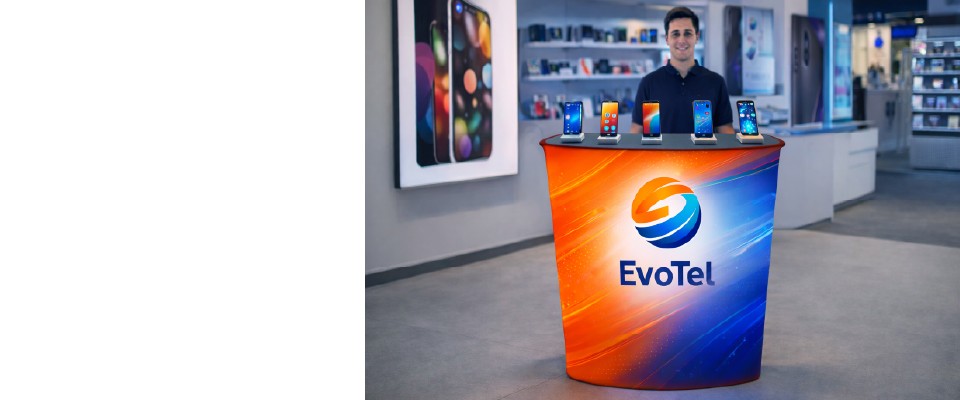 La copertura grafica completa in tessuto consente di personalizzare l’intero desk, trasformandolo in una superficie luminosa continua, senza interruzioni visive, ideale per rafforzare l’identità del brand.