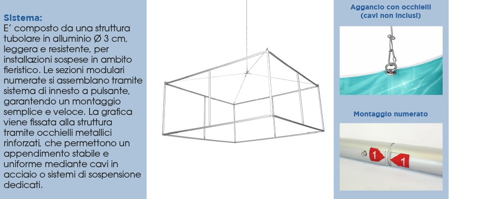 Uno strumento di comunicazione sospesa per fiere, eventi e allestimenti