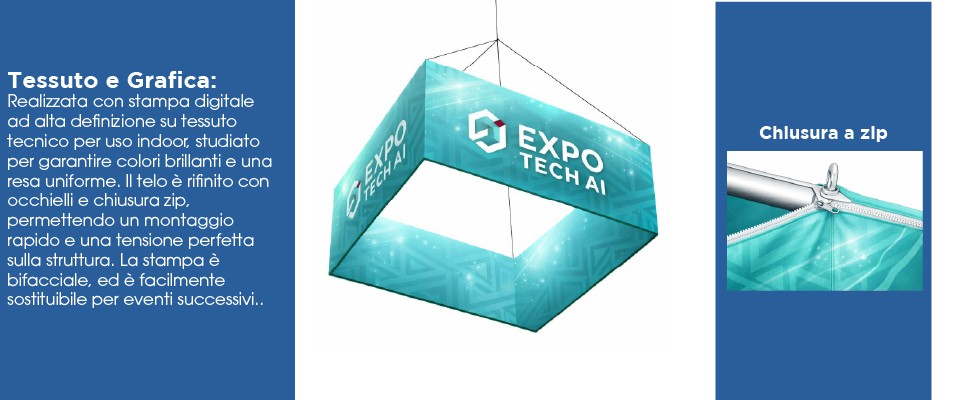 Appendimento Quadrato – Soluzione Sospesa Professionale per Fiere, Eventi e Comunicazione Visiva