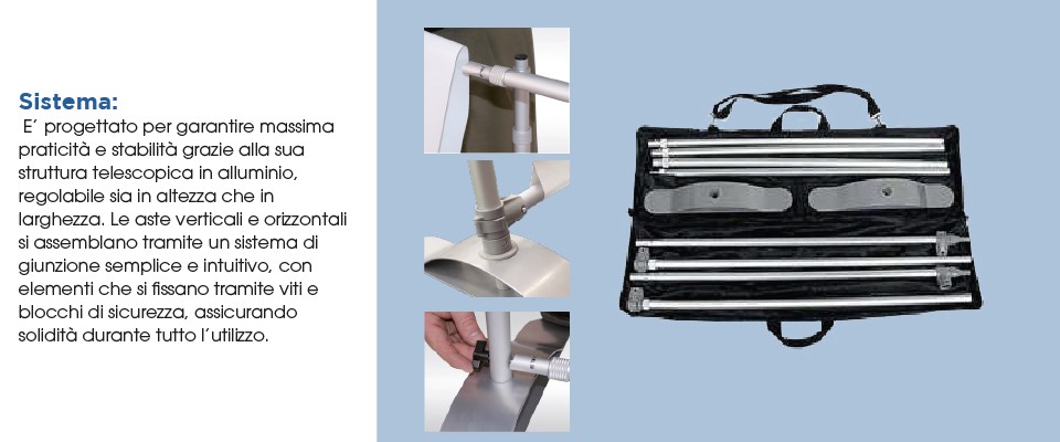 sistema telescopico che permette di regolare il telo alla dimensione desiderata