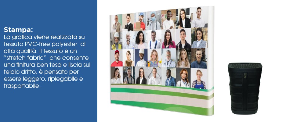 I pannelli sono realizzati in PVC specifico per pop-up, materiale flessibile ma resistente, caratterizzato da: