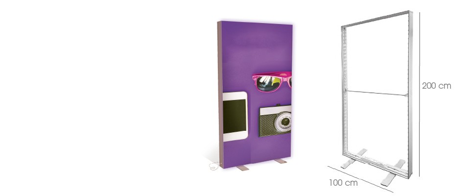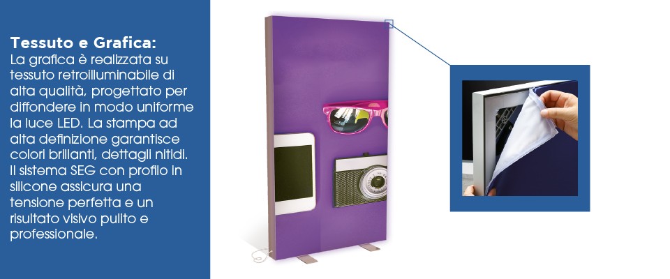 Include telaio luminoso Vector LED da 100×200 cm, sistema LED integrato, grafica in tessuto retroilluminabile e struttura autoportante. Soluzione completa pronta all’uso.