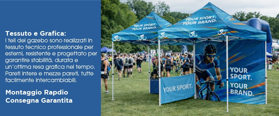 Un Gazebo Personalizzato 2×2 professionale pensato per eventi, fiere e brand identity
