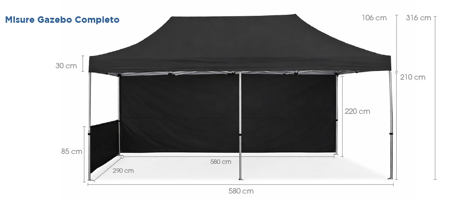 Il Gazebo Personalizzato  3x6 è disponibile in diverse configurazioni: