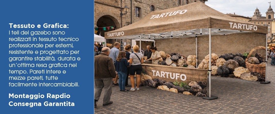 Il risultato è un gazebo professionale funzionale, ordinato e immediatamente operativo.