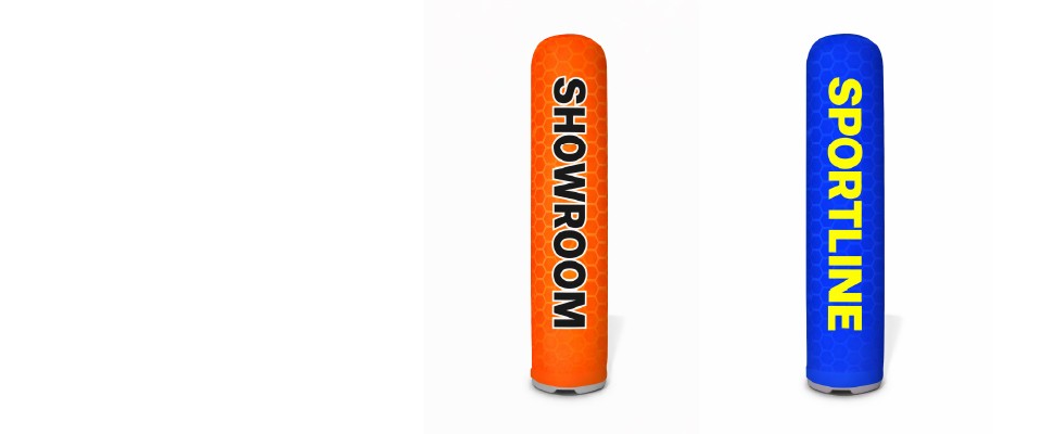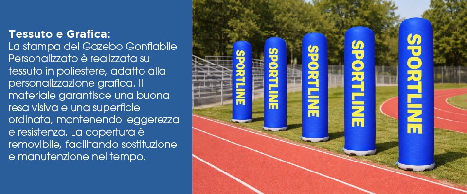 Il Totem Gonfiabile Personalizzato è progettato per accogliere grafiche stampate su tessuto, fissate alla base tramite velcro.