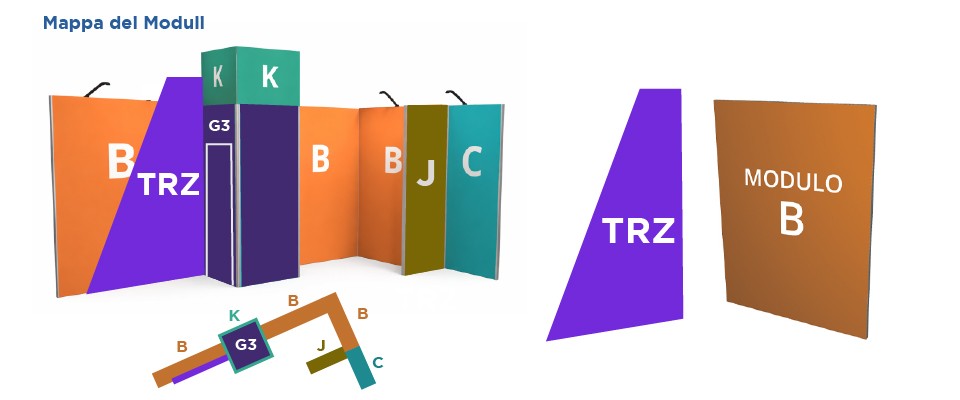 È progettato per essere abbinato ai Modulo B degli stand modulari, garantendo continuità strutturale, coerenza estetica e massima integrazione.